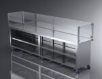 • Mobility: Castors for movement or fixed stainless/plastic legs